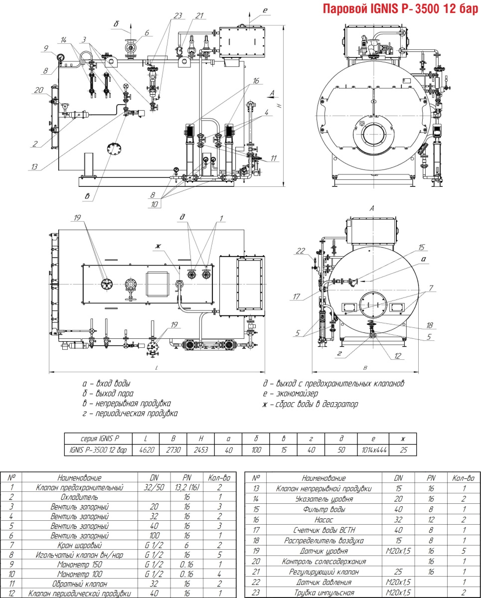 Технические характеристики парового трёхходового котла ARCUS IGNIS P-3500