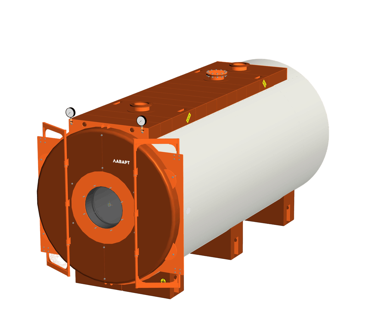 Водогрейные котлы Lavart Industrial-1000 представляют собой автоматизированные жаротрубно-дымогарные агрегаты с принципом трехходового прохождения продуктов сгорания, функционируют с мощностью 1000 кВт и рабочим давлением 0,6 МПа.